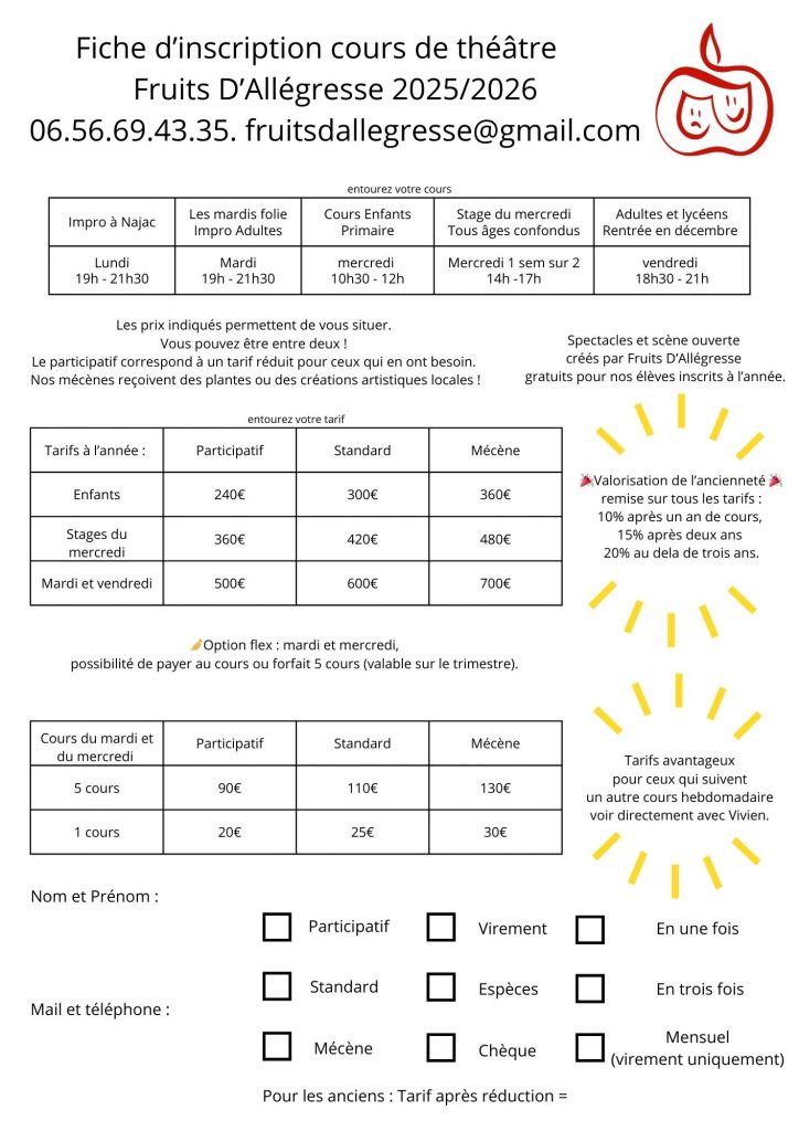 Informez nous si vous souhaitez participer à un cours d’essai et/ou si vous souhaiter recevoir la fiche d’inscription (mail, texto, Whatsap).